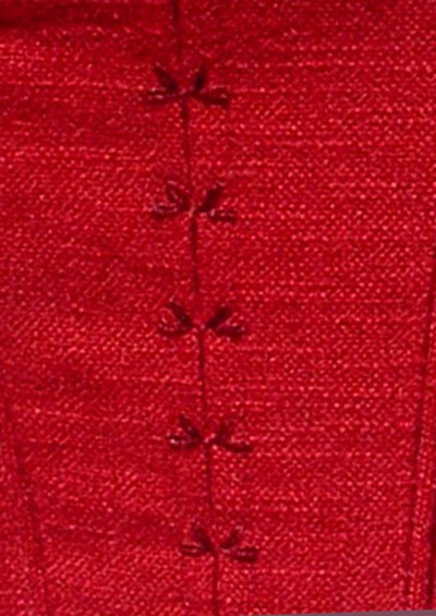 Mittel- und Seitennähte, wie auch beim Ausschnitt im Stoff des Leibchens passepoliert.
