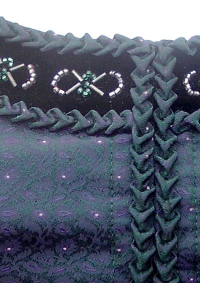 Rüschen am Ausschnitt und Rückenteil, Samtspiegel mit Perlenstickerei.