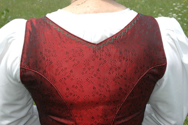 1 cm Wollvorstoß in der Farbe des Leibls. Zarte grüne Stickerei um den Halsausschnitt