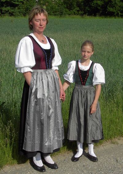 Passepoilierung in rot oder blau im Farbkontrast zum Leib. Passepoilierung mit schwarzem Samtband abgegrenzt.