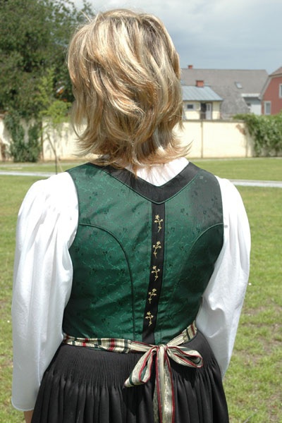 Ist die Blende schwarz, wird in der Farbe des Leibls – ist die Blende im Leiblstoff, wird schwarz passepoiliert.