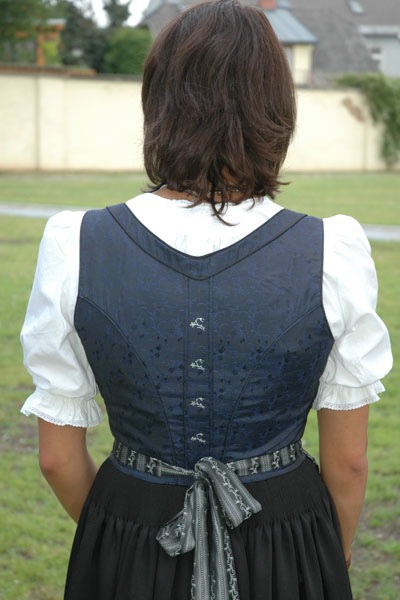 Ist die Blende schwarz, wird in der Farbe des Leibls – ist die Blende im Leiblstoff, wird schwarz passepoiliert.