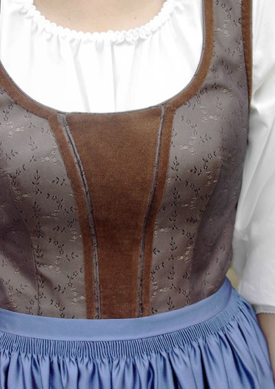 Vorbild war ein nobles bürgerliches Seidenleibchen mit Latz und Verschnürung. Burgi Huiber vom Museum der Stadt Radkersburg hat es Frau Sylvia Dollinger zur Verfügung gestellt, die diese Tracht 1958 erneuerte.