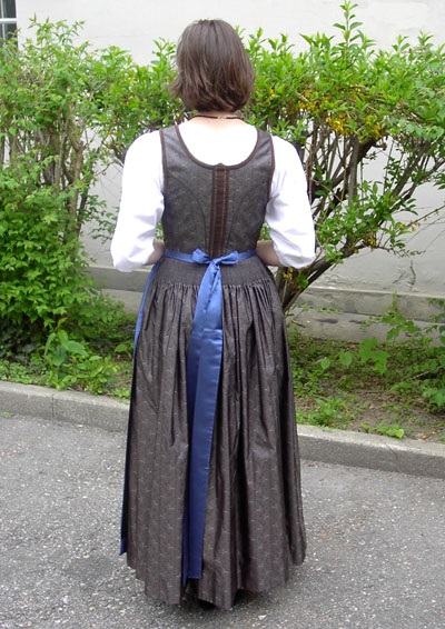 Vorbild war ein nobles bürgerliches Seidenleibchen mit Latz und Verschnürung. Burgi Huiber vom Museum der Stadt Radkersburg hat es Frau Sylvia Dollinger zur Verfügung gestellt, die diese Tracht 1958 erneuerte.