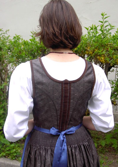 Vorbild war ein nobles bürgerliches Seidenleibchen mit Latz und Verschnürung. Burgi Huiber vom Museum der Stadt Radkersburg hat es Frau Sylvia Dollinger zur Verfügung gestellt, die diese Tracht 1958 erneuerte.