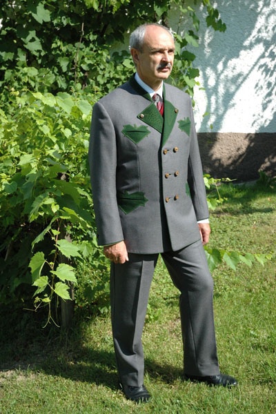 Steirische Weinbauernversahen ihren Anzug gerne mit Symbolen ihrer Heimat.
