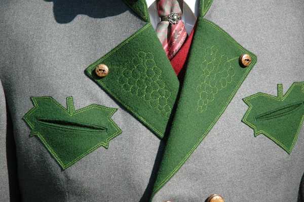 Steirische Weinbauernversahen ihren Anzug gerne mit Symbolen ihrer Heimat.